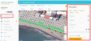 Mostra lo stato di riempimento della spiaggia. Esistono diversi tipi di visualizzazione: quello a mappa (preso dal satellitare Google), quello a Teatro, quello a Tableau (come quello presente in pod.camp) e in fine quello a lista.