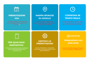 L’applicativo è integrato con pod.camp quindi il suo utilizzo è possibile sia creando prenotazioni dentro il PMS che verranno scaricate automaticamente all’interno di pod.camp, che con la vendita diretta dalla spiaggia o dalla piscina.