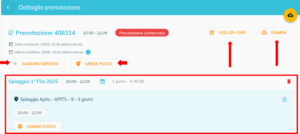 - CAMBIARE POSTO: è possibile selezionare un nuovo posto direttamente dalla prenotazione, scegliendo tra quelli disponibili per le date indicate.