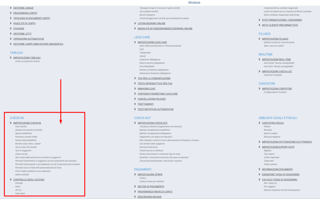 IMPOSTAZIONI CHECK IN #