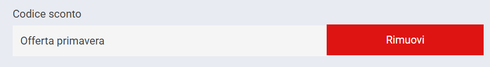 Il codice sconto si presenterà quindi applicato, per necessità con l’azione “Rimuovi” è possibile eliminarlo dal conto.