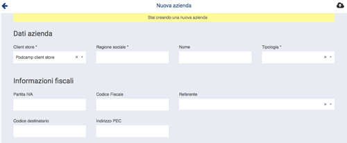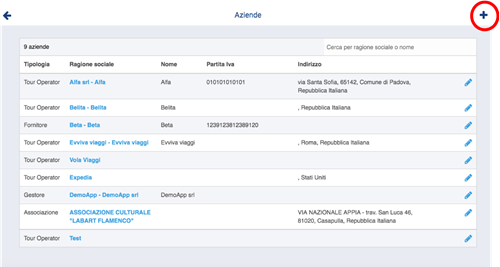 Per aggiungere l’azienda clicchiamo sul simbolo aggiungi (+) e compiliamo i campi.