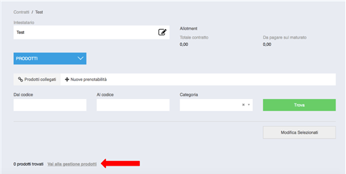 Nella sezione PRODOTTI è possibile inserire i prodotti che decidiamo di dare, ad esempio in allotment, al Tour Operator.