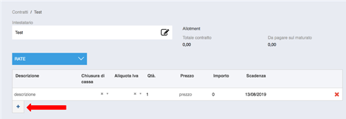 Una volta inserita l’azienda ⇒ cliccare su CONTRATTO dal menu di sinistra ⇒ cliccare sul tasto aggiungi +.