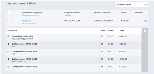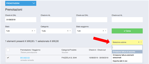 Oppure possiamo emettere documenti fiscali, selezionando la prenotazione di interesse.