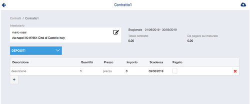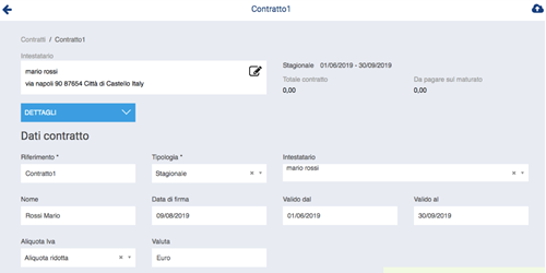 Salvando si aprirà la seconda interfaccia relativa ai contratti e si aprirà direttamente sui DETTAGLI che abbiamo appena inserito.