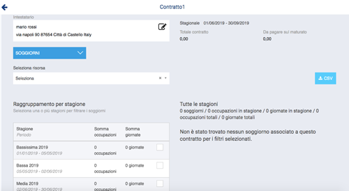 Infine abbiamo la sezione relativa ai SOGGIORNI in cui abbiamo un riepilogo di essi, relativo ovviamente al contratto stesso.