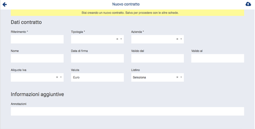 Si aprirà l’interfaccia relativa al contratto con una serie di campi da compilare.