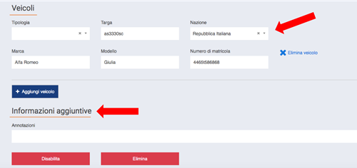 Nel campo successivo è possibile inserire uno o più VEICOLI, ma sono solamente un’informazione che verrà recuperata nel soggiorno.