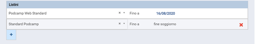 Una volta effettuato lo spostamento, se scorriamo la pagina arrivando alla sezione Listini: cliccando sul pulsante + aggiungi potremo selezionare un altro listino da applicare alla seconda parte del soggiorno.