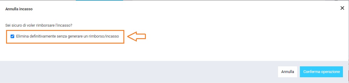 Vi verrà chiesto “Elimina definitivamente senza generare un rimborso/incasso”?