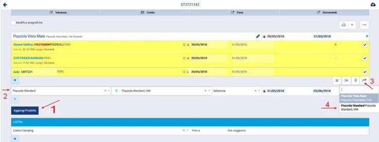 Se il cliente si sposta da una risorsa camping ad un’altra risorsa camping vi basta aggiungere una nuova risorsa nel soggiorno attraverso il pulsante Aggiungi prodotto.