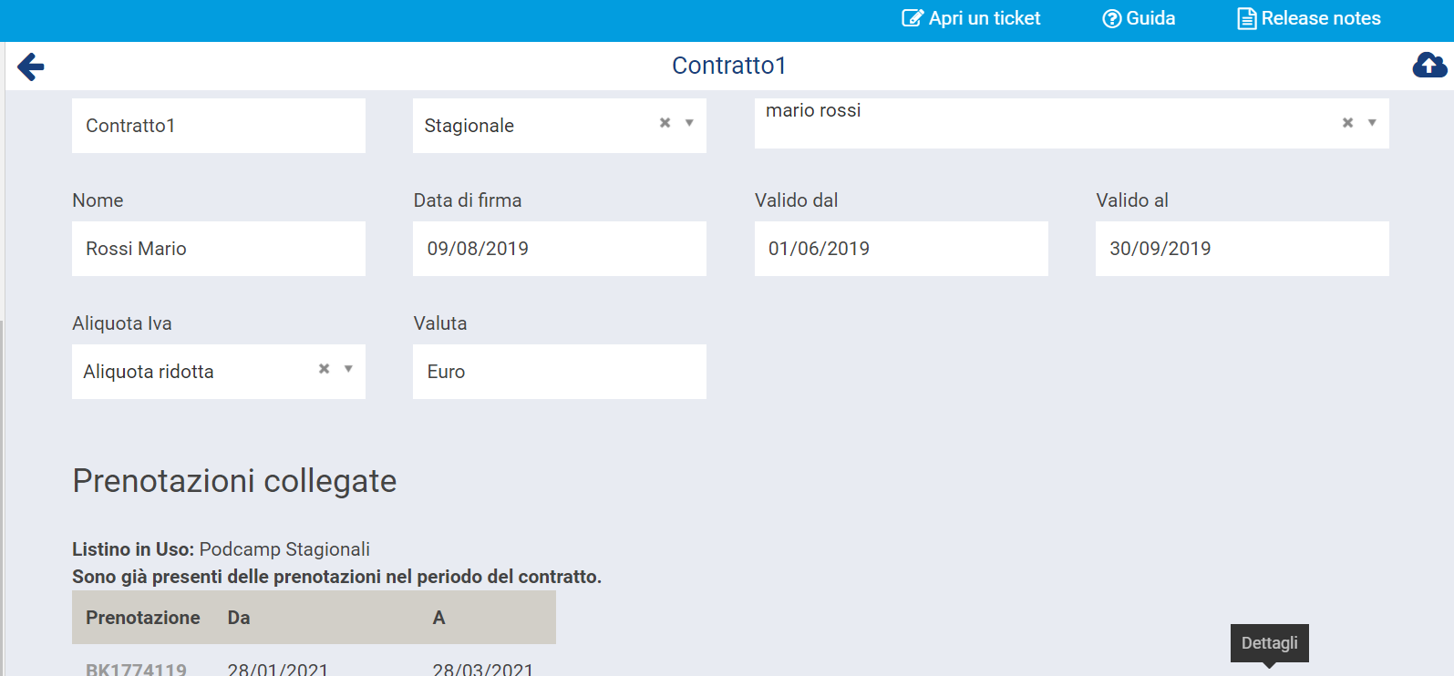 - la funzionalità apparirà nella sezione dettagli del contratto ed è semplice da usare