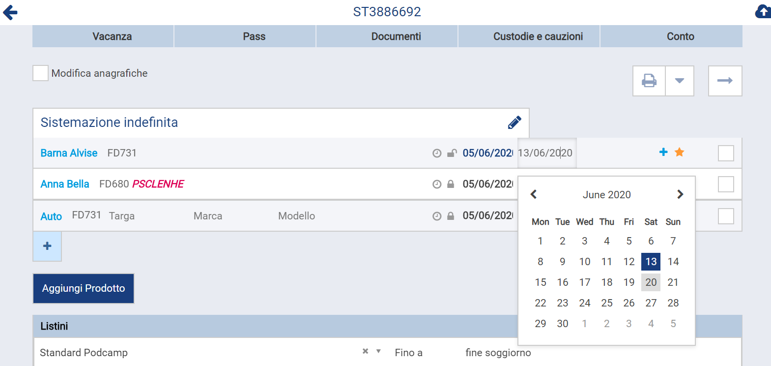 Dovete prima dissociare il prodotto, quindi allungare il periodo della vacanza cliccando sul lucchetto per potere inserire le nuove date del prolungamento della vacanza ed infine riselezionare il prodotto.