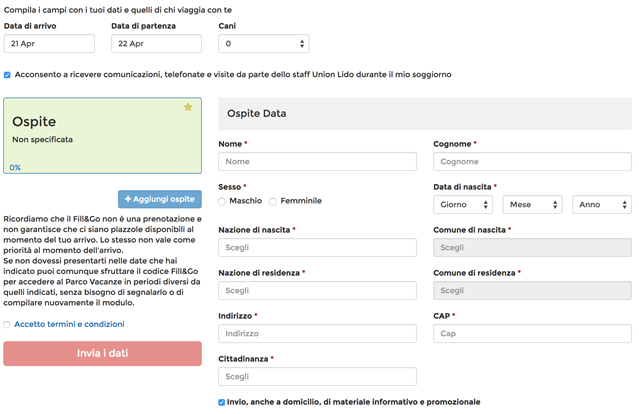 Questo strumento permette di registrare i dati dei componenti della vacanza prima che questi arrivino in campeggio, velocizzando in questo modo la fase del check in.