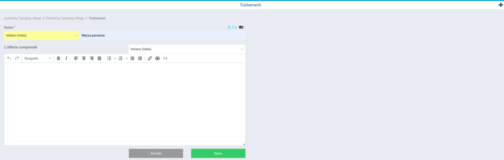 – TRATTAMENTI: non è obbligatorio configurarli, è sempre possibile non includerli nel form e nei lead oppure lasciare solamente il trattamento “solo pernottamento”.