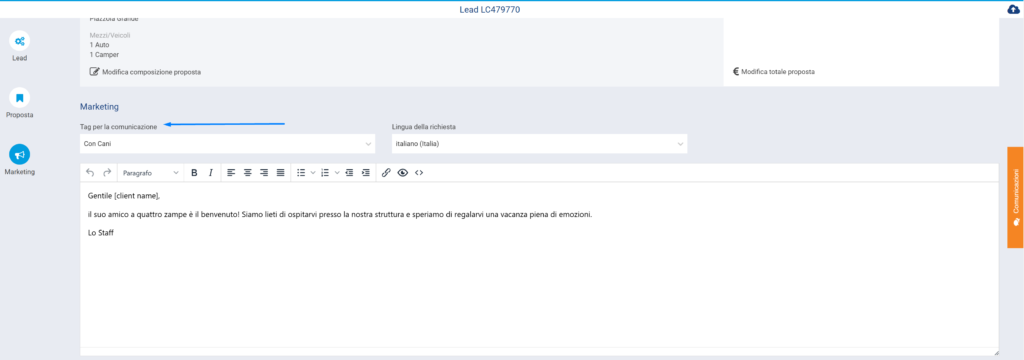 Scorrendo in fondo alla pagina del lead, arriviamo alla sezione MARKETING.