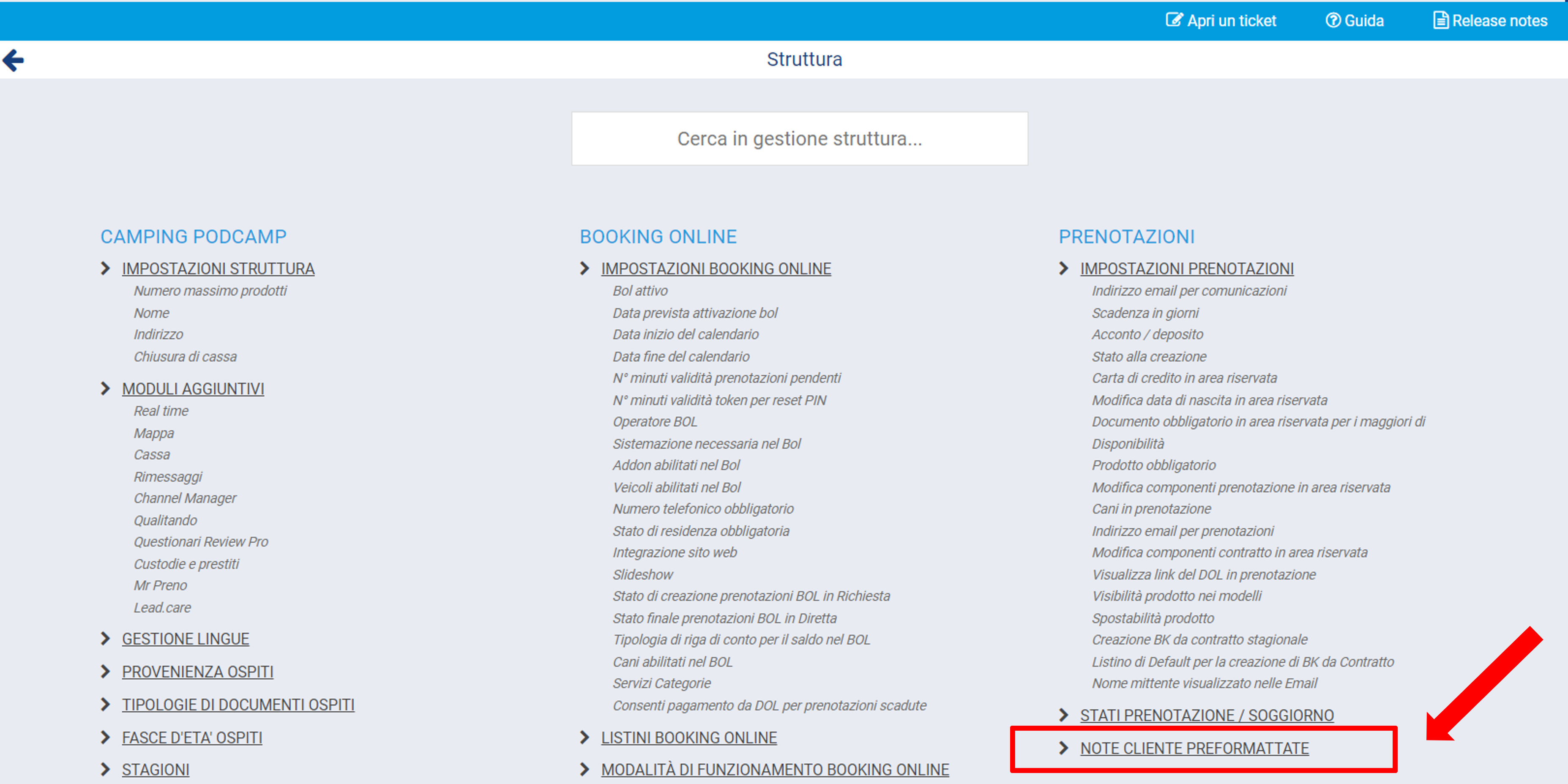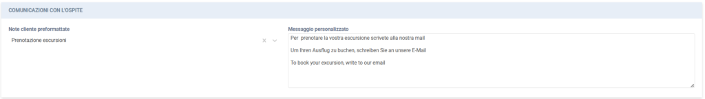 Se abbiamo quindi dei testi che abitualmente inviamo ai clienti, possiamo procedere come segue: Configurazione → Gestione struttura → sezione Prenotazioni