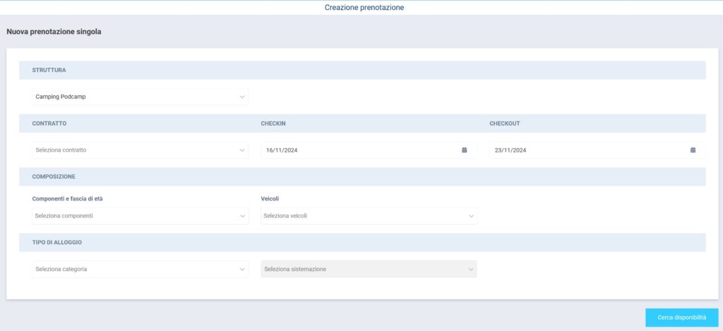 Al termine della compilazione campi, per avviare la ricerca di disponibilità basta cliccare sull’azione in azzurro CERCA DISPONIBILITÀ.