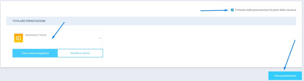 Di default verrà fleggato “Il titolare della prenotazione fa parte della vacanza” ma è possibile deselezionarlo per non far apparire il titolare come componente della vacanza. Questi sono i casi in cui una persona può prenotare per altre, in questo modo deselezionando questa voce, il titolare non comparirà mai come componente.