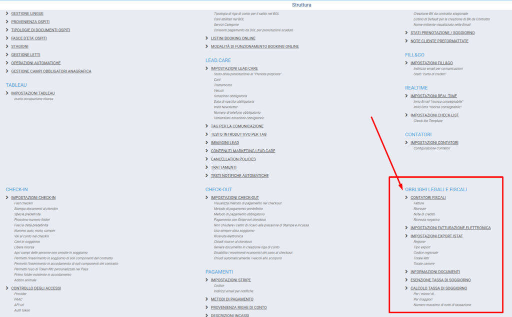 Questa sezione viene compilata in fase di configurazione in base ai vostri dati: regione, tipo export, codice regionale