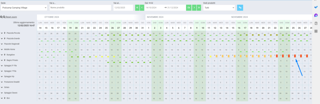 L’indicazione avviene anche all’interno della singola categoria segnalata con sfondo nero quando all’interno c’è almeno un prodotto con almeno un giorno in overbooking.