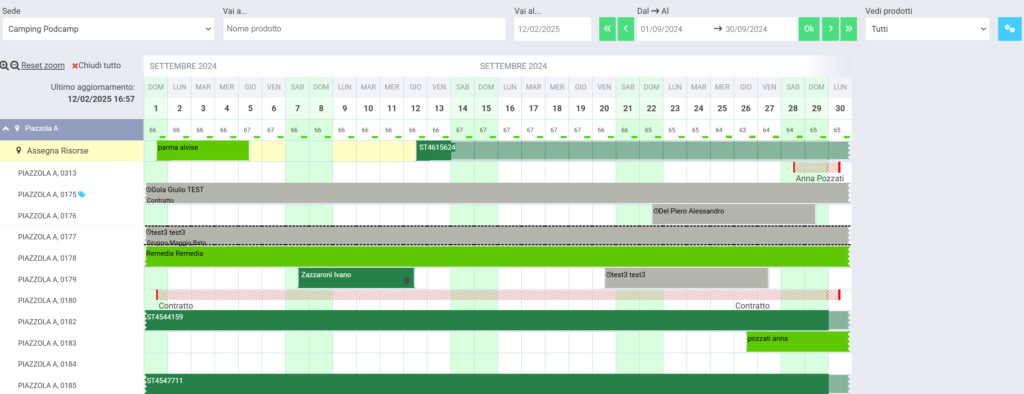 La funzione Zona d’attesa posiziona le prenotazioni e i soggiorni con un prodotto non ancora definito all’interno della categoria selezionata in una zona di attesa segnata in giallo, ben distinti dai prodotti già assegnati.