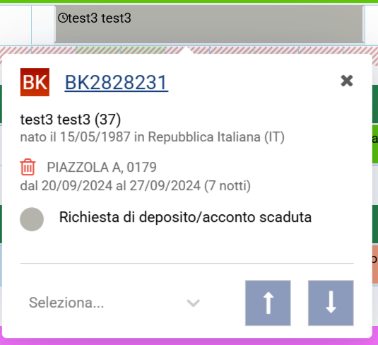 Cliccando sul riquadro colorato della prenotazione/soggiorno è possibile prendere visione di alcune informazioni.