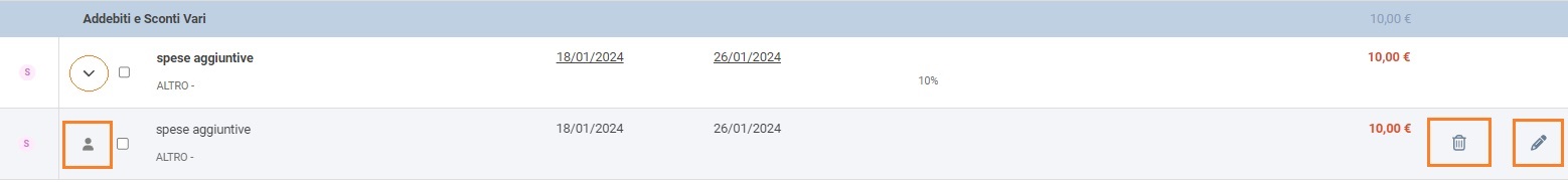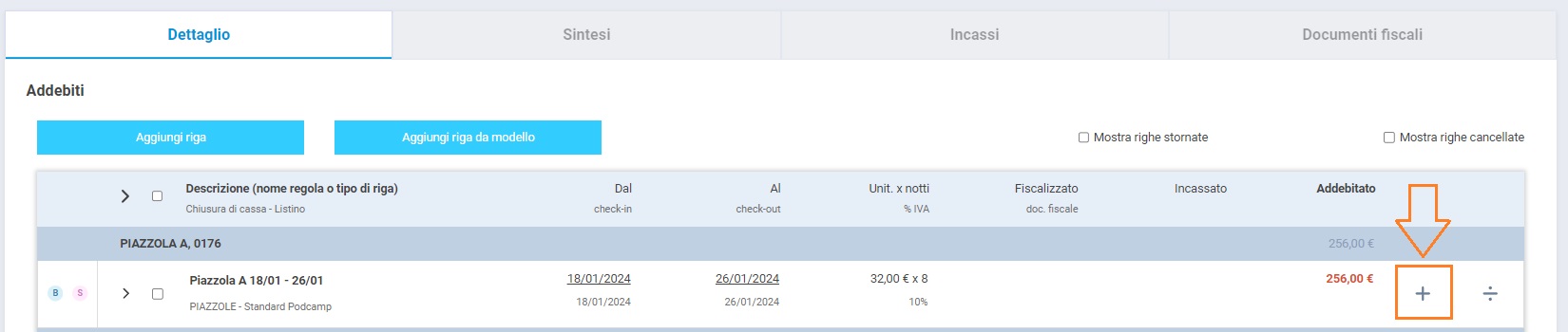Il simbolo “+” presente in ogni riga invece, passando il cursore del mouse lo potrete visualizzare, è utile nel caso in cui si necessita di aumentare addebiti mirati per quel determinato target.