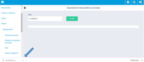 Salviamo e torniamo al report, clicchiamo nuovamente su GO e vediamo che questa volta il sistema scarica direttamente il file in formato xml in basso a sinistra, file pronto per essere inviato alla questura.