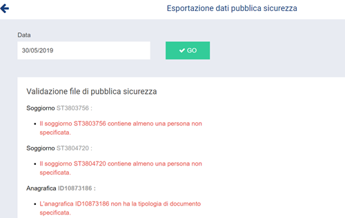 Per esportare il report bisogna inserire la data per la quale voglio estrarre i dati della Pubblica Sicurezza.
