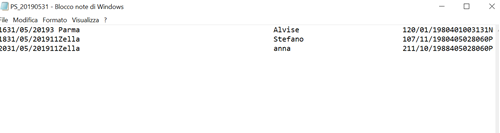 Questo che segue è un esempio di file esportato: