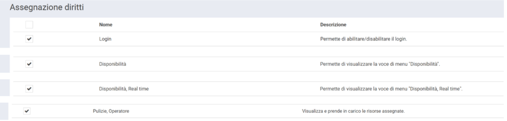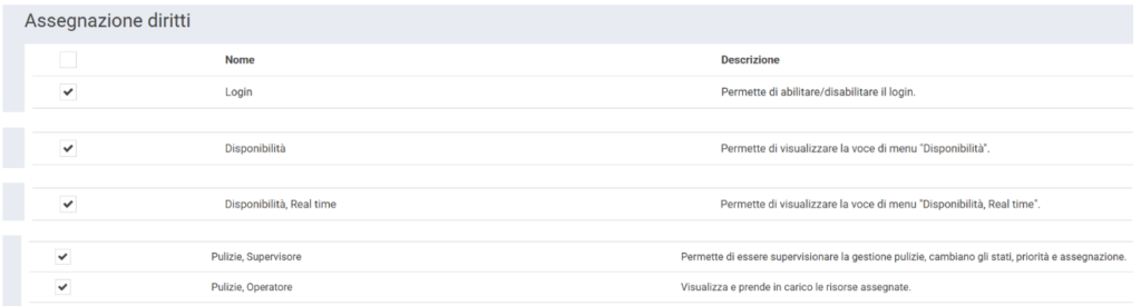 I Diritti da assegnare all’utente Governante sono: