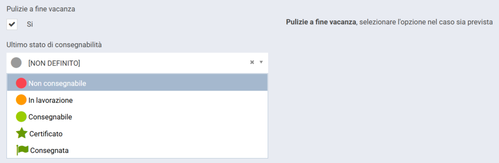 Le risorse che la struttura desidera rientrino nella lista del Real time, nei dettagli della configurazione, devono avere il seguente check: Pulizie a fine vacanza: Sì