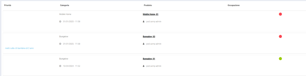 E’ possibile limitare la lista inserendo la data del prossimo checkin/prenotazione: in questo modo il sistema ci mostrerà solamente i prodotti che dovranno essere occupati in quella data.