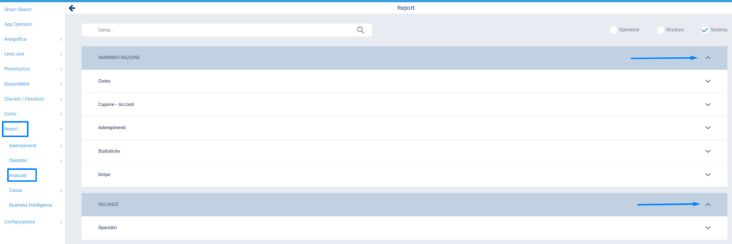 Espandendole con le frecce sulla destra, si possono trovare tutti i report: