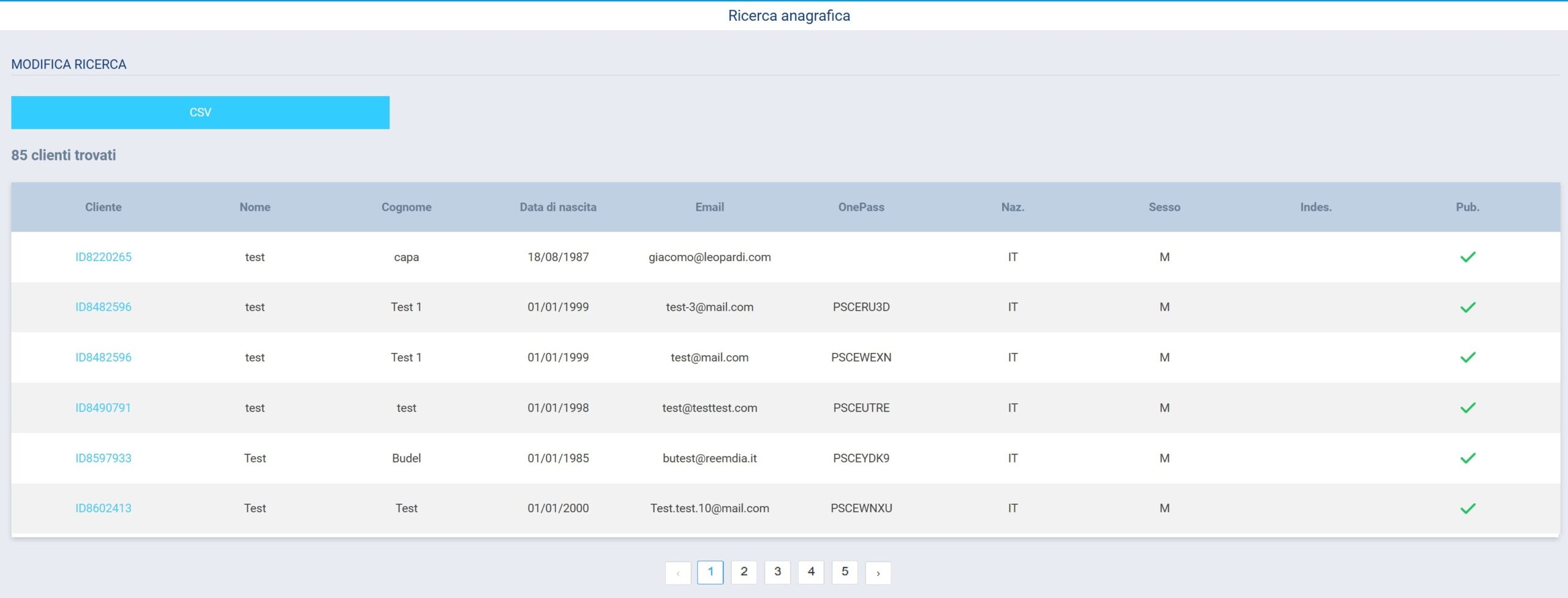 Questa sezione è utile per cercare un cliente o un gruppo di clienti attraverso qualsiasi campo significativo dell’anagrafica, compresi e-mail e attributi personalizzati.