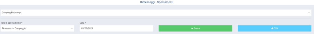 Nella sezione SPOSTAMENTI sarà possibile ricerca gli spostamenti sia per tipologia di spostamento che per data. Anche qui sarà sempre possibile estrarre i dati in CSV.