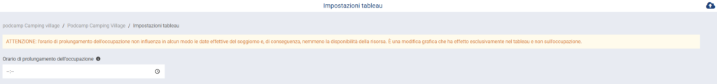 ATTENZIONE: l’orario di prolungamento dell’occupazione non influenza in alcun modo le date effettive del soggiorno e, di conseguenza, nemmeno la disponibilità della risorsa. È una modifica grafica che ha effetto esclusivamente nel tableau e non sull’occupazione.