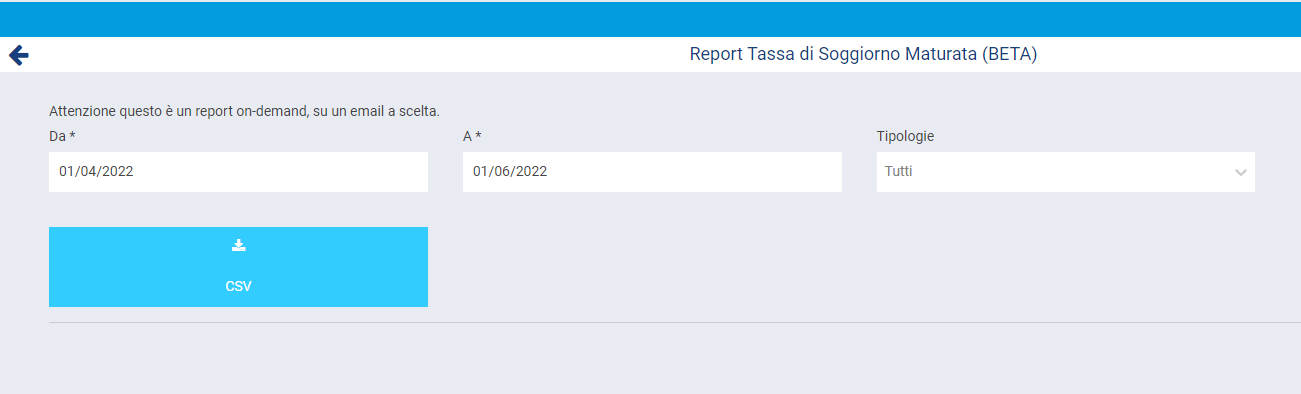 Il report Tassa di soggiorno maturata è disponibile e fruibile alla voce Report → Adempimenti